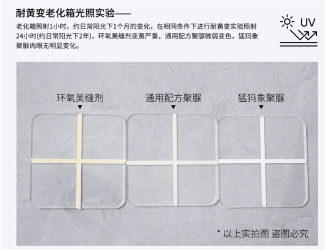 而专业美缝剂采用环保健康材料,以猛犸象聚脲美缝剂为例,其主要成分是聚天门冬氨酸脂,不含苯环结构。它通过了国检、团检、欧盟 reach 标准和法国 A + 环保认证,检测报告 24 项全通过,环保性能远超美缝剂国标要求。不含壬基酚,固化后不会释放甲醛、甲苯、VOC 等有害于人体健康的物质,无刺激性味道,即使家里有孕妇或小孩,也能放心使用。